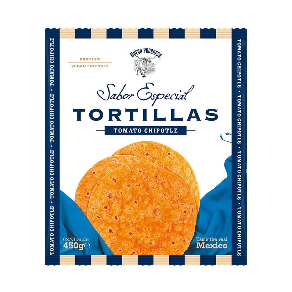 Taste the real Mexico! Yksi meksikolaisen keittiön kulmakivistä ovat tortillat. Nuevo Progreson tomaatilla ja chipotlella maustettu vehnätortilla toimii loistavasti niin tortillojen kuin muiden meksikolaisten annosten, kuten Quesadillas, valmistukseen.